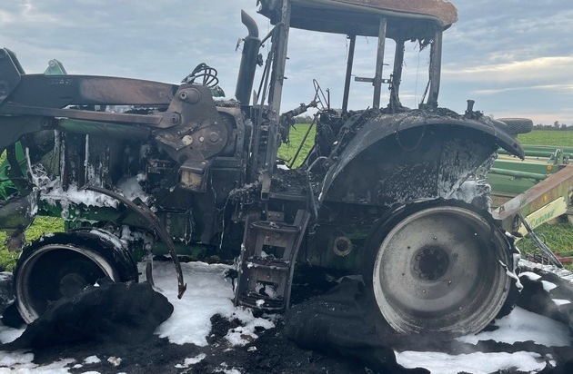 Gegen 11:30 Uhr wurde die Polizei zu dem Fahrzeugbrand gerufen. Bei Eintreffen der Beamten waren ein Löschzug aus Nörvenich sowie die Feuerwehr des Fliegerhorsts bereits mit den Löscharbeiten beschäftigt, der Traktor stand in Vollbrand. Der Geschädigte gab an, dass er sich auf der Zugmaschine befunden habe, als es plötzlich zu Rauchentwicklungen im Motorraum gekommen sei. Er verließ das Fahrzeug und konnte beobachten, wie sich kurze Zeit später Flammen bildeten und der Traktor in Brand geriet.