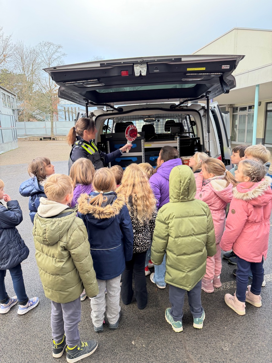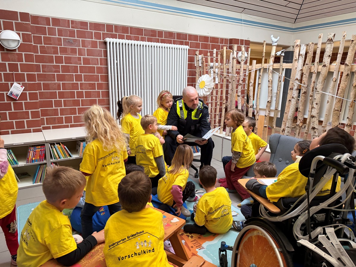 Einsatzkräfte besuchten den Kindergarten Krümelhaus in Ellen, die Städtische Katholische Grundschule Echtz sowie die Katholische Grundschule an der Rur in Winden. In den Einrichtungen wurden Geschichten vorgelesen, Fragen beantwortet und kindgerechte Einblicke in den Arbeitsalltag der Polizei vermittelt.