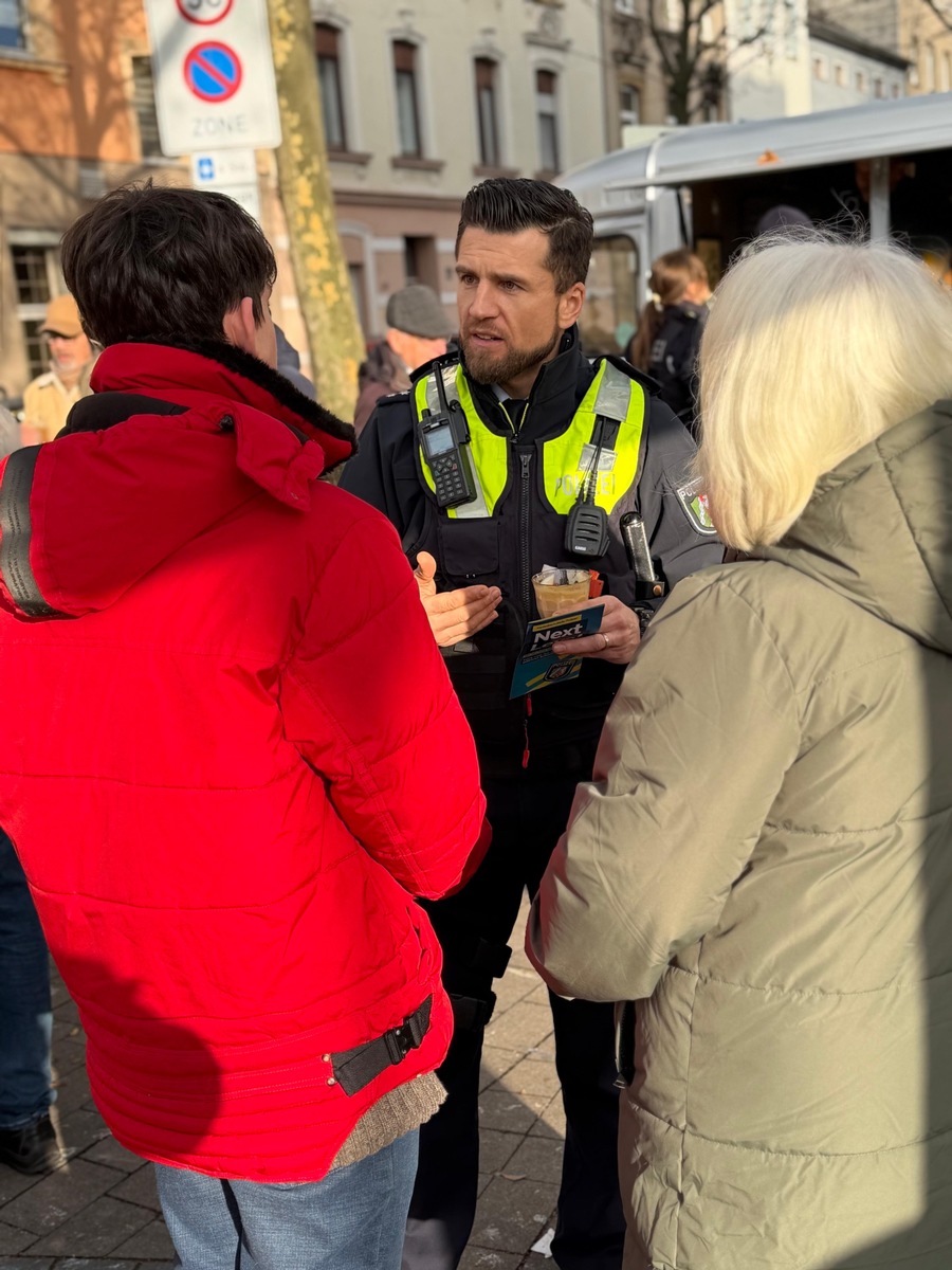 Die Veranstaltung "Coffee with a Cop" der Polizei Düren am heutigen Donnerstag (04.12.2025) auf dem Karadeniz-Eregli-Platz war ein voller Erfolg. Zahlreiche Bürgerinnen und Bürger nutzten die Gelegenheit, bei einem Kaffee mit den Beamtinnen und Beamten ins Gespräch zu kommen.