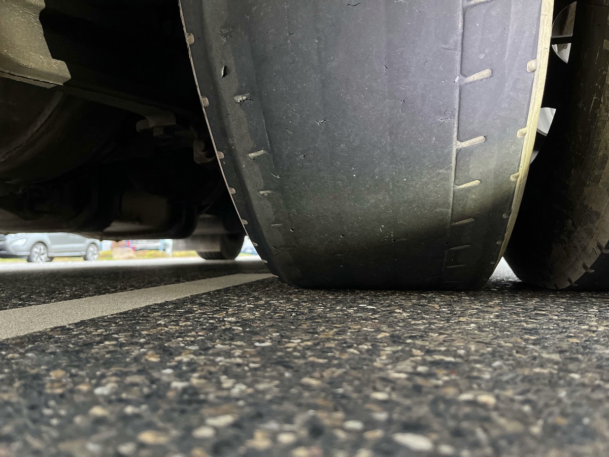 Im Rahmen einer allgemeinen Verkehrskontrolle fiel der 40-Tonnen-Sattelzug aufgrund seines schlechten technischen Zustands auf. Bei der anschließenden Überprüfung stellten die eingesetzten Beamten an insgesamt vier Reifen der Zugmaschine erhebliche und sicherheitsrelevante Schäden fest. Teilweise waren die Reifen derart abgefahren, dass kein Profil mehr erkennbar war; in mehreren Bereichen lag bereits das Drahtgeflecht der Karkasse offen. Angesichts der extrem hohen Gefahr eines Reifenplatzers und der damit verbundenen Unfallgefahr untersagten die Beamten die Weiterfahrt mit sofortiger Wirkung. Um eine unerlaubte Fortsetzung der Fahrt - etwa während der Nachtstunden - zuverlässig zu verhindern, wurde an der Sattelzugmaschine eine Radkralle angebracht. Da der Fahrer über keinen festen Wohnsitz im Inland verfügt, wurde zur Sicherung des Bußgeldverfahrens eine Sicherheitsleistung erhoben. Gegen das verantwortliche Transportunternehmen leiteten die Beamten ein Ordnungswidrigkeitenverfahren ein.