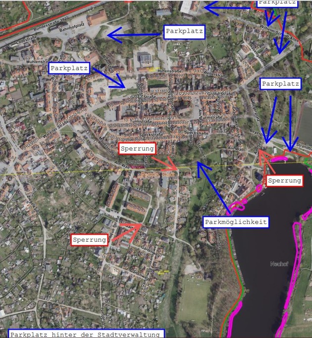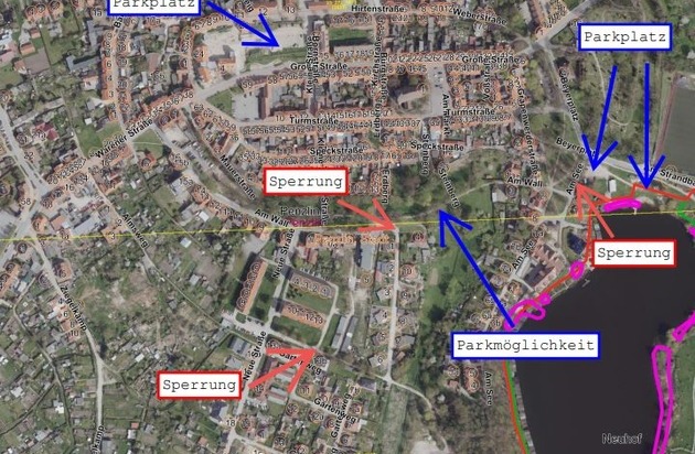 Da entsprechend viele Besucher erwartet werden, die teils im Laufe des Vormittags auch mit PKW anreisen, wird es etwa im Zeitraum zwischen 09.00 Uhr und 18.00 Uhr zu Sperrungen und Beeinträchtigungen im Stadtgebiet kommen (s. Markierungen im angehängten Bild).