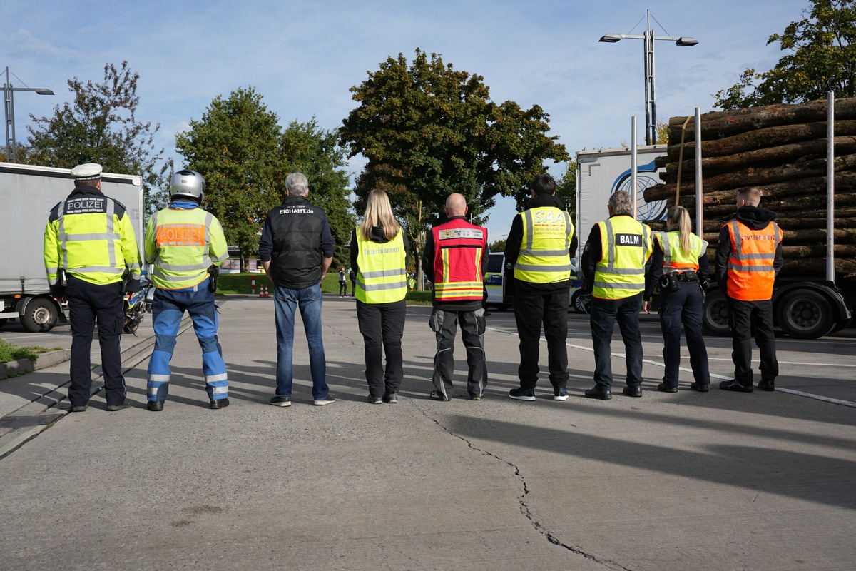 Parallel zu der Schwerpunktwoche "Focus on the road" führten Einsatzkräfte am Mittwoch, den 8. Oktober 2025 eine groß angelegte Kontrollmaßnahme an der Tank- und Rastanlage Sindelfinger Wald an der Bundesautobahn 8 durch. Von A wie Aufenthaltsgesetz bis Z wie zollrechtliche Verstöße: Bei den ganzheitlichen Kontrollen schauten Einsatzkräfte von Landes- und Bundespolizei sowie weiteren Behörden ganz genau hin. Entsprechend wurden unerfreulicherweise auch zahlreiche Verstöße aus allen Bereichen festgestellt. Unter anderem waren zehn Personen unter Einfluss von Drogen am Steuer von Kraftfahrzeugen unterwegs und wurden aus dem Verkehr gezogen. Viele Fahrzeuge wiesen technische Mängel auf oder waren falsch beladen bzw. überladen, in einem Fall sogar um 70%. Darüber hinaus registrierten die eingesetzten Messgeräte 304 Abstandsverstöße sowie 360 Geschwindigkeitsverstöße, die in der Folge geahndet werden. Trauriger Spitzenreiter war dabei ein Autofahrer, der die zulässige Höchstgeschwindigkeit von 120 Stundenkilometer um 63 km/h überschritten hatte.