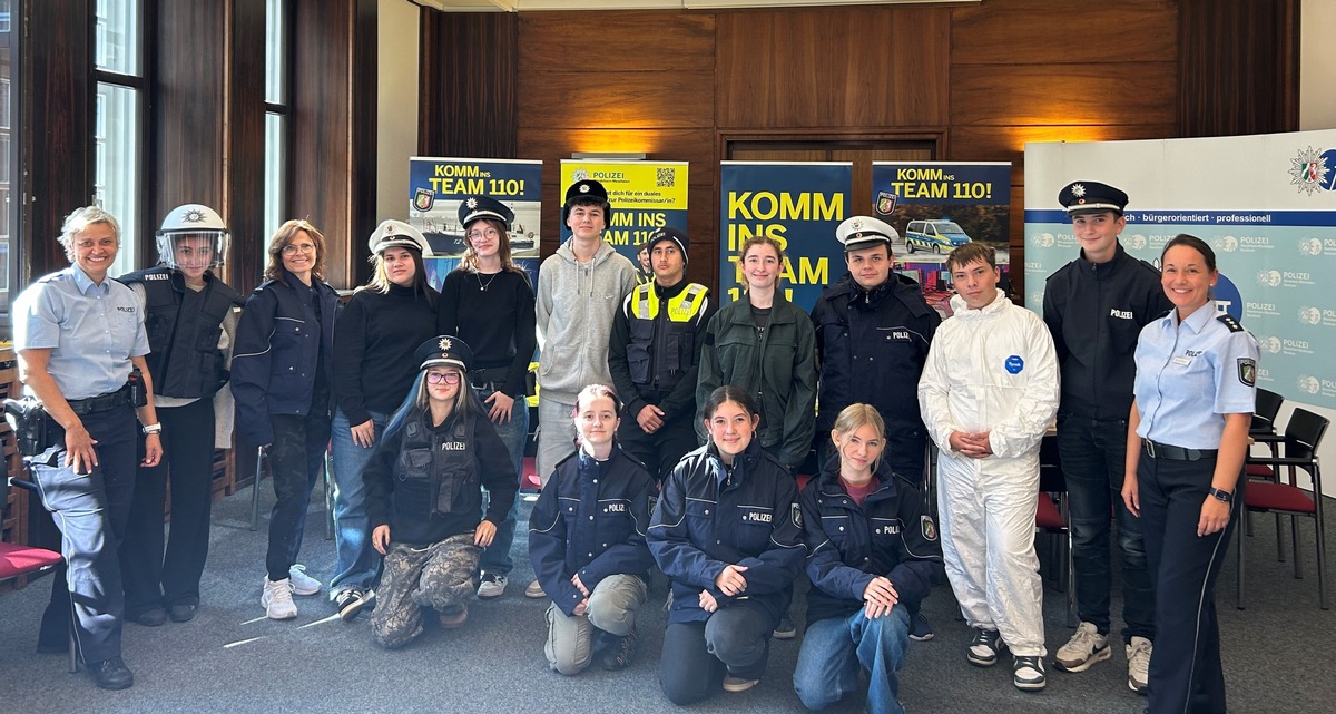 Polizei ist weit mehr als Streife fahren: Zahlreiche Jugendliche der Erich-Kästner-Gesamtschule Bochum haben im Rahmen der TalentTage Ruhr am 1. Oktober im Polizeipräsidium Bochum ein besonderes Planspiel erlebt. Unter dem Motto "Team 110 im Einsatz!" schlüpften die Schülerinnen und Schüler in verschiedene Polizeifunktionen und mussten gemeinsam eine fiktive Bedrohungslage meistern.