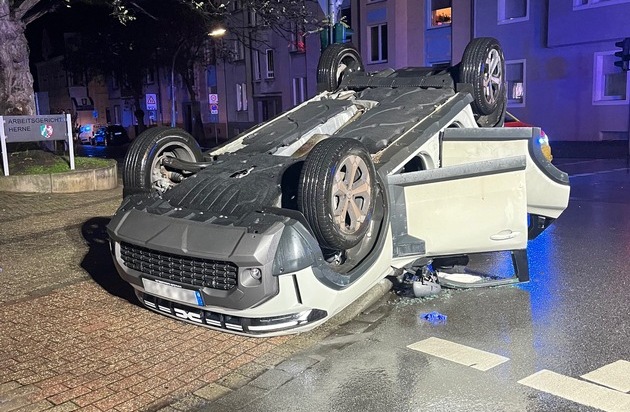 POL-BO: Zusammenstoß in Herne - Fahrzeug bleibt nach Unfall auf Dach liegen