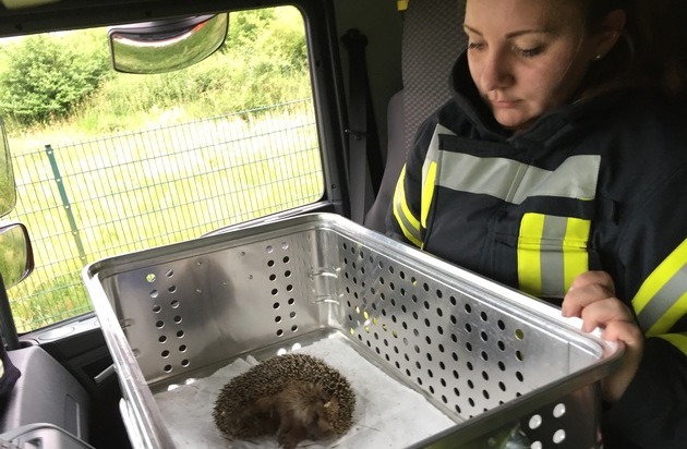 Am heutigen Abend gegen 19:30 Uhr wurde die Feuerwehr Detmold zu einer Tierrettung im Bereich Hangar / Flugplatz gerufen. Eine aufmerksame Bürgerin hatte einen Igel entdeckt, der im Zaun des Flugplatzes steckengeblieben war. Unter Zuhilfenahme eines hydraulischen Spreizgerätes des Rüstwagens wurde der Zaun etwas aufgebogen, sodass das Tier befreit werden konnte. Der völlig erschöpfte Igel wurde einem Tierarzt übergeben. Nach etwa 30 Minuten war der Einsatz beendet.