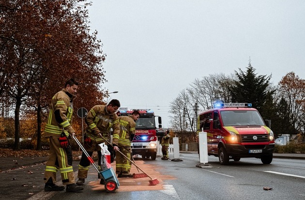 Am Samstagmorgen wurde die Feuerwehr Detmold um 07:52 Uhr zu einer gemeldeten Ölspur im Bereich der Kreuzung Elisabethstraße / Wittekindstraße gerufen. Nach erster Erkundung stellte sich heraus, dass sich die Verunreinigung über ein deutlich größeres Gebiet erstreckte, als zunächst gemeldet war.