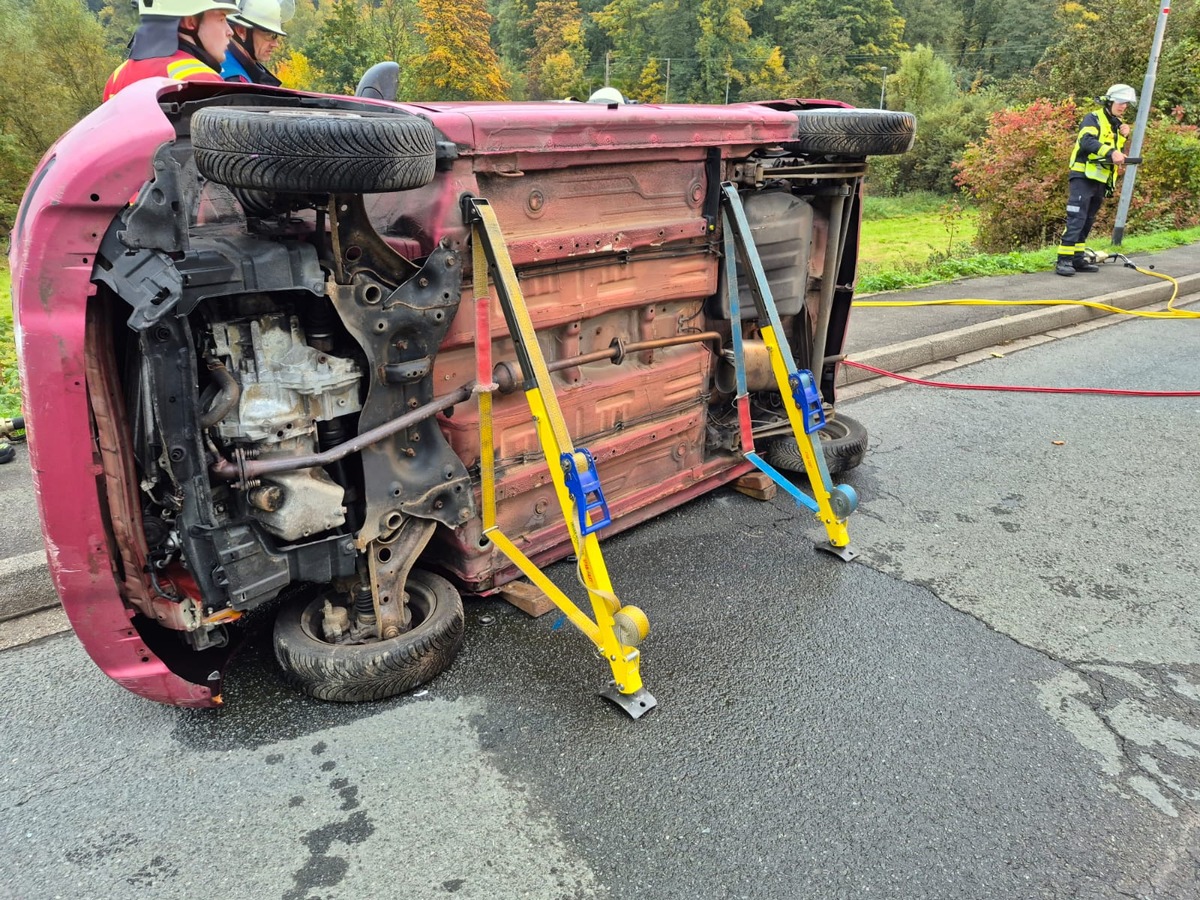 Angenommen wurden zwei schwere Verkehrsunfälle. Eines der Fahrzeuge lag auf der Seite, drei Personen wurden darin eingeklemmt. Ein weiteres Fahrzeug fuhr frontal auf einen parkenden LKW auf, auch hier mussten zwei Personen befreit werden. Beim Aufprall wurde ein Kind aus dem Fahrzeug geschleudert und galt zunächst als vermisst.