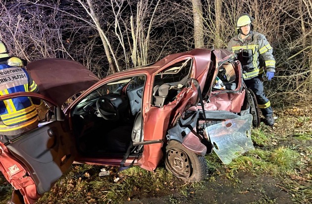 Beim Eintreffen der ersten Einsatzkräfte bot sich ein größeres Trümmerfeld an der Einsatzstelle. Aus bislang ungeklärter Ursache waren zwei Pkw in einen Verkehrsunfall verwickelt. Insgesamt waren drei Personen betroffen. Durch die Wucht des Zusammenstoßes wurden zwei Personen in einem der beteiligten Fahrzeuge eingeschlossen.