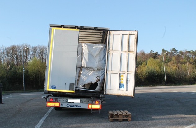 Am Dienstagmorgen kontrollierten Beamte der Schwerverkehrsüberwachung einen LKW, der vermutlich aufgrund falscher Beladung in deutliche Schieflage geraten war. Der Lkw war unterwegs auf dem Weg durch halb Europa, als er den Beamten in Höhe Kaiserslautern aufgefallen ist. Bei der anschließenden Kontrolle stellten sie fest, dass die Spedition, offenbar um eine zusätzliche Fahrt einzusparen, auf eine erste Palettenlage weitere Ladung aufgestapelt hatte. Durch das hohe Gewicht brachen die unteren Holzpaletten seitlich ein und die Ladung drückte an die Seitenplane. Dies führte zu einer erheblichen Schieflage des Anhängers, welche in einer Kurvenfahrt durchaus zu einem Kippen des Fahrzeuges hätte führen können. Dem Fahrer wurde die Weiterfahrt bis zum Umladen und verkehrssicheren Verstauen seiner Ladung untersagt. Gegen Fahrer und Verlader wurde ein Bußgeldverfahren eingeleitet.