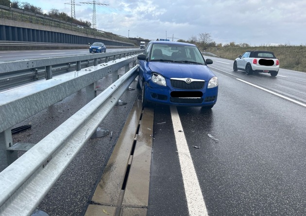 Eine 27 Jahre alte Autofahrerin befuhr gestern (27.10.2025, 12 Uhr) die AS Landau-Nord und wollte auf die B10 in Fahrtrichtung A65 fahren. Vermutlich infolge nichtangepasster Geschwindigkeit kam sie mit ihrem Fahrzeug auf regennasser Fahrbahn ins Schleudern und kollidierte dabei mit der Mittelleitplanke. An ihrem Fahrzeug entstand wirtschaftlicher Totalschaden und musste abgeschleppt werden. Es kam zu Verkehrsbehinderungen.