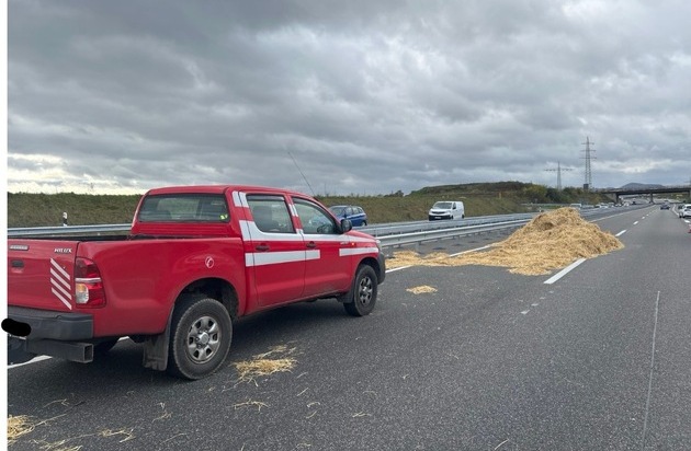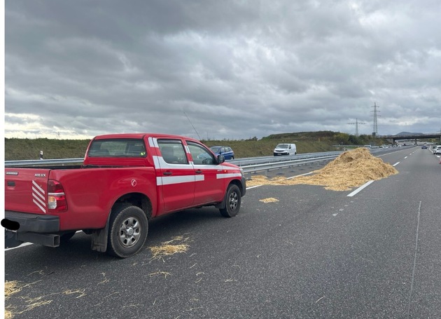 Vermutlich ein nicht ordnungsgemäß gesicherter Heuballen war heute (28.10.2025) gegen 13.25 Uhr Ursache für eine Verkehrsbehinderung auf der B10 Höhe der AS Landau-Nord. Der 76 Jahre alte Fahrer wurde belangt, weil er seine Ladung auf seinem PickUp vor Fahrtantritt nicht ausreichend gesichert hatte. Bis zur Beseitigung der Gefahrenstelle kam es in dem Bereich zu Verkehrsstörungen.