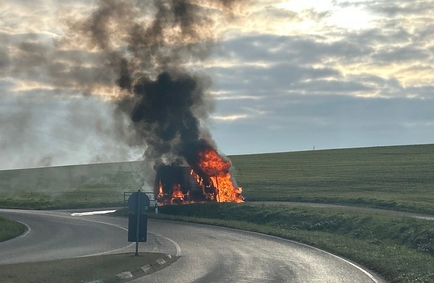 Vor circa einer Stunde geriet an der K23 von der B38 in Richtung Deutschhof ein Kleintransporter in Brand. Die Feuerwehr hat die Löscharbeiten bereits abgeschlossen und es wurde niemand verletzt. Nach aktuellem Stand dürfte von einem technischen Defekt auszugehen sein.
