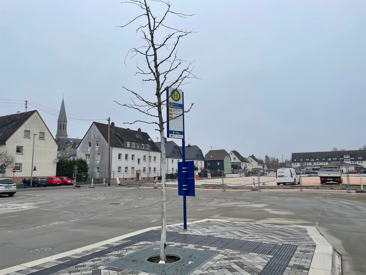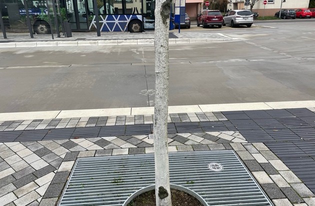 Am Montag, 10.11.2025, beanzeigt die VGV Birkenfeld die Beschädigung eines frischgepflanzten Baums am neuen Zentralen-Omnibus-Bahnhof Am Talweiher in Birkenfeld.