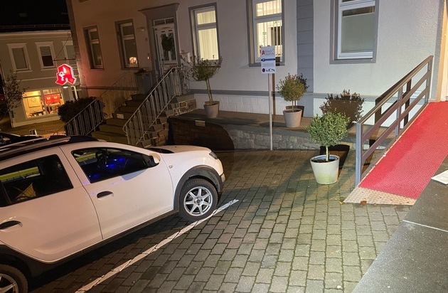 Am Montag, 15.12.2025, gg. 16.00 Uhr, beobachtete ein Zeuge an der Hirsch-Apotheke in der Hauptstraße 11, wie ein heller Kleinwagen in Höhe des Seiteneingangs vorwärts gegen das Gelände der Lagerrampe stieß.