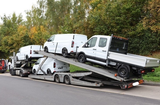Gegen Mittag stoppten die Beamten einen litauischen Autotransporter, der drei Ford Transit und einen Ford Pritschenwagen von den Niederlanden nach Deutschland transportierte. Im Verlaufe der Kontrolle wurde festgestellt, dass die zulässigen Abmessungen des LKW, bedingt durch falsche Beladung, überschritten wurden. Der Transporter maß eine Gesamthöhe von 4,36m und Gesamtlänge von 19,96 m, erlaubt sind jedoch lediglich 4,00m Höhe und 18,75m Länge.