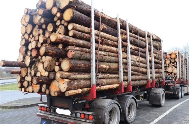 Im Rahmen von Kontrollen hinsichtlich überladener Holztransporte in der Eifel wurde am vergangenen Freitag durch die eingesetzten Beamten unter anderem wieder einmal ein völlig überladener Holztransport gestoppt. Am Freitagmorgen fiel den Beamten auf der BAB A-60 bei Badem zunächst ein Holztransport mit niederländischer Zulassung auf, bei welchem bereits das äußere Erscheinungsbild nichts Gutes erahnen ließ. Denn den Beamten fiel die enorme Beladung des Holztransportes und die nicht ausreichend gesicherten Stämme auf dem Lkw ins Auge. Der Holztransport befand sich auf dem Weg zu einem Sägewerk in Belgien. Die enorme Beladung und auch weitere Anzeigen am Lkw ließen eigentlich keine Zweifel mehr an einer deutlichen Überladung des Holztransportes aufkommen. Bei einer Verwiegung auf einer Brückenwaage in der Nähe wurde dann tatsächlich ein Gesamtgewicht von fast 60 Tonnen und eine Überladung von fast 50% bzw. 20 Tonnen festgestellt. Daher wurde die Weiterfahrt umgehend untersagt und über die Hälfte der Fichtenstämme an geeigneter Örtlichkeit abgeladen. Erst nachdem der Fahrer die Ladung ordnungsgemäß gesichert hatte, wurde die Weiterfahrt zum Sägewerk gestattet. Gegen den Fahrer, der zugleich Verantwortlicher des Unternehmens ist, wurde ein Bußgeldverfahren eingeleitet, in welchem er zumindest ein erhöhtes Bußgeld erwarten dürfte. Zugleich wird aber auch ein Verfahren geprüft, wonach der Frachterlös unter Umständen eingezogen wird. Im weiteren Verlauf der Kontrolle wurden im Bereich Prüm und Gerolstein noch weitere Holztransporte kontrolliert, dessen Fahrer das zulässige Gesamtgeweicht nur leicht überschritten hatten und entsprechend mit einer Verwarnung belegt wurden. Im Laufe des Nachmittags wurde im Rahmen der Kontrollen ein mit Milch beladener Sattelzug bei Pronsfeld festgestellt, welcher ebenfalls um mehr als 4 Tonnen überladen war. Gegen Fahrer und Unternehmen wurde ein Bußgeldverfahren eingeleitet. Am Abend wurde ein weiterer Milchtransport aus Belgien in der Nähe der Ausfahrt Prüm an der BAB A-60 gestoppt, bei dessen Fahrer eine enorme Vielzahl von Verstößen gegen die Lenk- und Ruhezeiten festgestellt wurden. Aber nicht nur das, im Sattelzug wurden noch ein falscher und nicht mehr zulässiger Fahrtenschreiber festgestellt. Nachdem der Fahrer vor Ort eine Sicherheitsleistung in Höhe von 2000 Euro hinterlegt hatte, wurde ihm nur noch die Weiterfahrt zum Entladeort und im Anschluss zu einer Fachwerkstatt gestattet, um den Fahrtenschreiber austauschen zu lassen. Im Einsatz waren Beamte der Schwerlastkontrollgruppe des Polizeipräsidiums Trier, der Polizeiwache Gerolstein und des Bundesamtes für Logistik und Mobilität (BALM) - Außenstelle Mainz.
