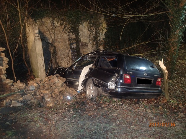 Am Montag, den 16.01.2017, befuhr ein 21-Jähriger aus dem Landkreis Alzey-Worms die L409 aus Wendelsheim kommend in Richtung Alzey. Aus bislang noch ungeklärter Ursache kam der Fahrzeugführer und alleinige Fahrzeuginsasse nach rechts von der Fahrbahn ab und fuhr frontal gegen zwei Bäume. Von diesen prallte er ab und wurde seitlich gegen ein Geländer und die Stirnseite einer Bruchsteinmauer geschleudert. Durch den Aufprall wurde der 21-Jährige im Fahrzeug eingeklemmt und tödlich verletzt. Für die Unfallaufnahme musste die L 409 für ca. 3,5 Stunden in beide Richtungen voll gesperrt werden.