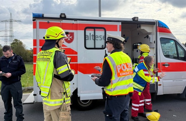 POL-PPMZ: Übungsszenarien in Budenheim: Blaulicht-Organisationen proben bei Verkehrsunfallübung den Ernstfall
