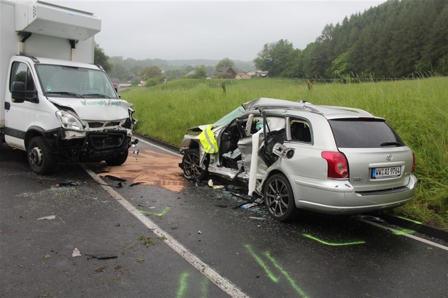 Schwerer Verkehrsunfall *Erstmeldung* Hergenroth-Stahlhofen am Wiesensee: Am Montag, 07:17 Uhr, kam es auf der K 54 zwischen Stahlhofen am Wiesensee und Hergenroth zu einem schweren Verkehrsunfall. Ein Pkw, besetzt mit vier Personen, befuhr die K 54 in Richtung Hergenroth. In einer Rechtskurve kam der Pkw auf nasser Fahrbahn aus noch ungeklärter Ursache ins Schleudern und krachte in einen entgegenkommenden 7,5 Tonnen Lkw. Der Fahrer des Pkw wurde schwer verletzt und wird derzeit von den Feuerwehren Westerburg, Hergenroth und Stahlhofen aus dem Pkw geborgen. Über die Schwere seiner Verletzungen kann derzeit keine Angaben gemacht werden. Die drei Mitfahrer im Pkw und der Fahrer des Lkw wurden leicht verletzt. Schwerer Verkehrsunfall *Nachtragsmeldung* Hergenroth-Stahlhofen am Wiesensee: Der 18 jährige Unfallverursacher aus der VG Rennerod erlitt schwere, jedoch nicht lebensgefährliche innere Verletzungen. Die K 54 wird vermutlich gegen 12:00 Uhr, nach Beendigung der Unfallaufnahme und Reinigung, für den Verkehr freigegeben. Nach ersten Schätzungen entstand ein Sachschaden von etwa 20.000,- Euro. POLIZEIINSPEKTION WESTERBURG - Telefon 02663/9805-0 - E-Mail: piwesterburg@polizei.rlp.de ********************************************************************* ************************************************************