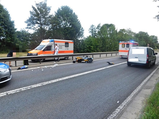 Remagen. Heute Nachmittag kam es zu einem Verkehrsunfall mit einer schwer verletzten Person. Ein 53-jähriger Motorradfahrer befuhr die Anschlussstelle Remagen-Süd in Richtung Koblenz auf und kam dabei ohne Fremdbeteiligung von der trockenen Fahrbahn ab und prallte gegen die Mittelschutzplanke. Der Verletzte wurde mit dem Rettungshubschrauber in ein Koblenzer Krankenhaus geflogen. Für die Dauer der Unfallaufnahme sowie für die Landung des Rettungshubschraubers musste die B 9 zeitweise komplett gesperrt werden. Die FFW Remagen unterstützte die Polizei Remagen mit der Drehleiter.