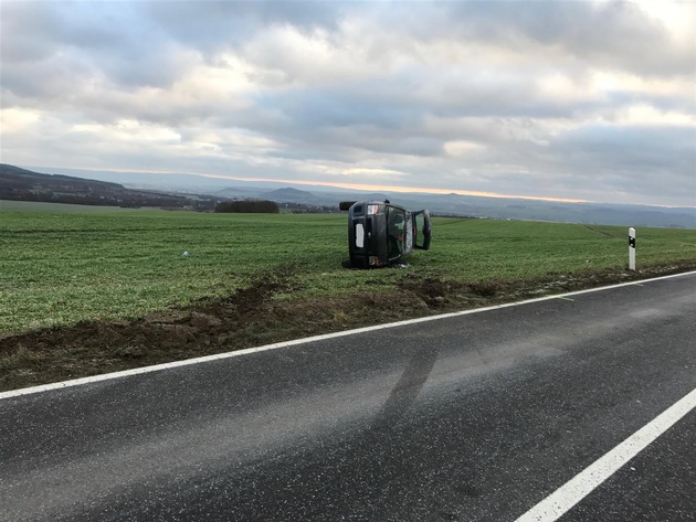 Am Freitagmorgen wurde hiesiger Dienststelle gegen 08:54 Uhr ein überschlagener PKW zwischen Bell und Mendig gemeldet. An der Unfallörtlichkeit selbst konnte festgestellt, werden, dass die 73jährige Unfallbeteiligte auf dem Weg von Bell nach Mendig auf eisglatter Fahrbahn ins Schleudern geriet und von der Fahrbahn abkam. Anschließend überschlug sich das Fahrzeug im angrenzenden Feld. Die Unfallbeteiligte wurde glücklicherweise nur leicht verletzt und wurde vorsorglich ins Krankenhaus verbracht. Die Straßenmeisterei wurde zum Abstreuen der Fahrbahn verständigt.