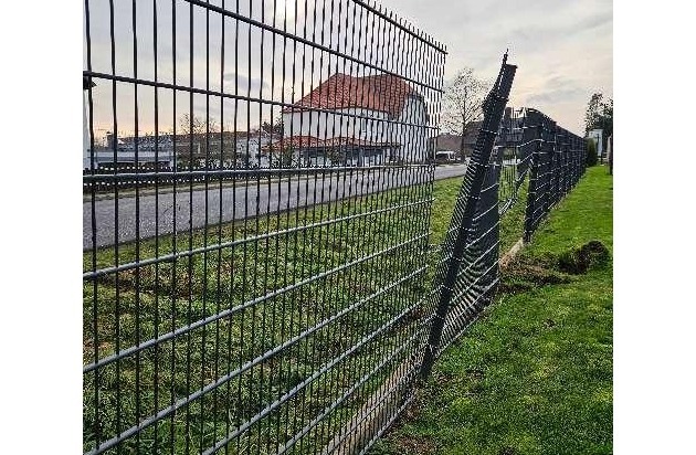 STAUFENBERG (ab) - Am Donnerstagvormittag (27.11.25) wurde an einem Gewerbegrundstück an der Göttinger Straße im Staufenberger Ortsteil Lutterberg (Landkreis Göttingen) ein massiv beschädigter Metallzaun festgestellt. Das Gelände ist durch einen davorliegenden Graben von der Straße getrennt.