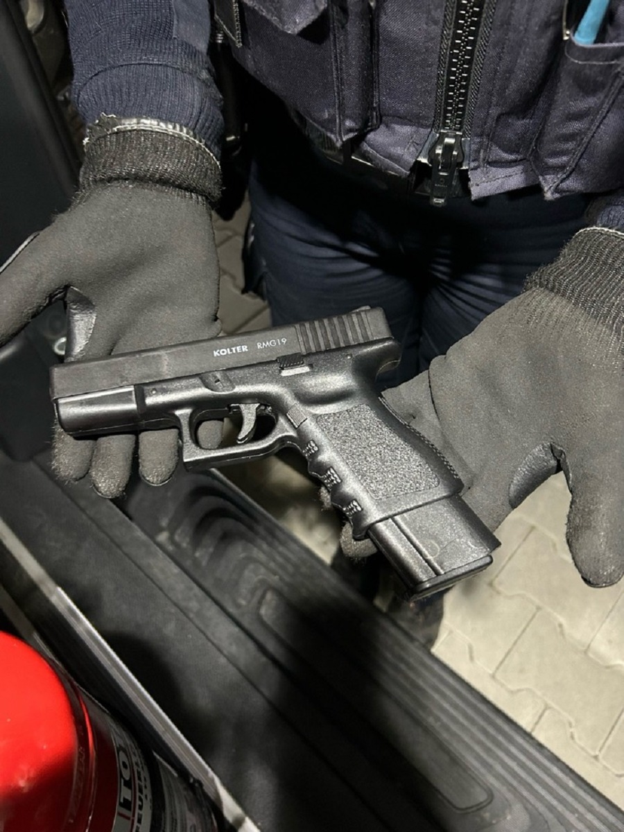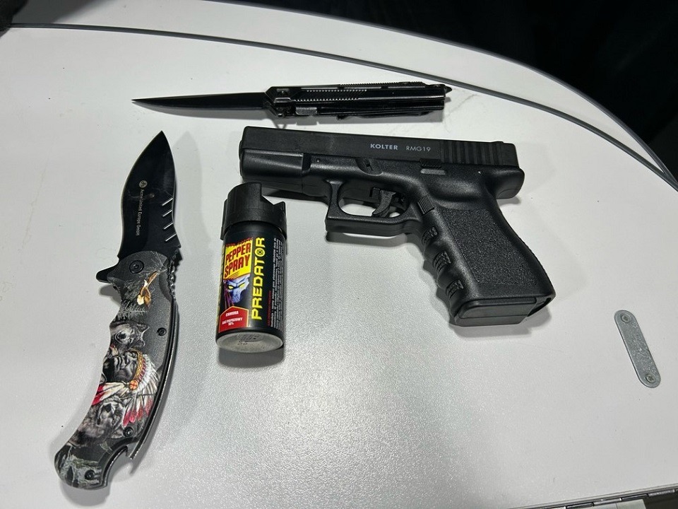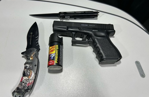 Bei einer ersten Durchsicht des Fahrzeugs stach den Kontrollbeamten in dem Fach an der Rückseite des Fahrersitzes indes das Griffstück einer Schusswaffe ins Auge. Diese war so eingesteckt, dass sie für den Fahrer jederzeit griffbereit war. Dabei handelte es sich um eine Reizstoffpistole, die sich mit Tränengas oder Pfefferspray-Kartuschen laden lässt. Im Rahmen der intensivierten Kontrolle des Fahrzeugs wurde ferner ein verbotenes Pfefferspray und zwei Springmesser festgestellt. Beide Messer hatten einen Hebelmechanismus und eine Klingenlänge von über 8,5 Zentimeter.