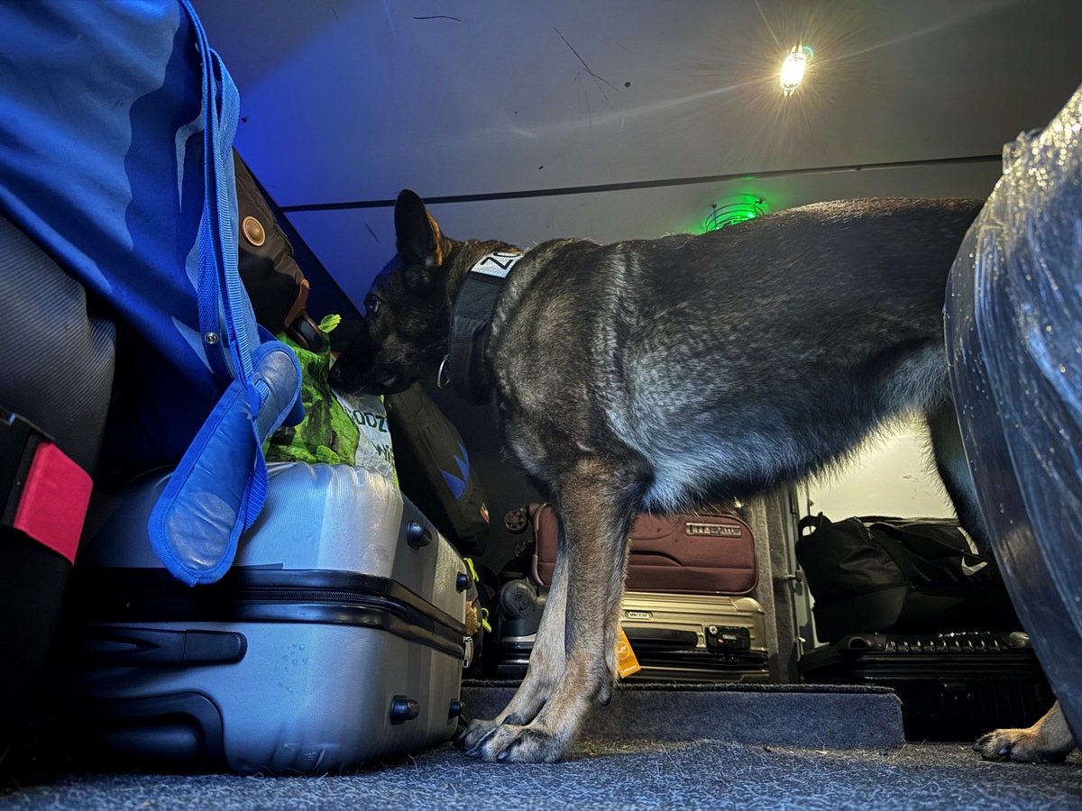 Bei einer gemeinsamen Kontrolle von Zoll und Bundespolizei am Montag letzter Woche auf der Autobahn 96 bei Sigmarszell hat Rauschgiftspürhündin Maila ein Kilogramm Marihuana in einem Fernbus aus Zürich gefunden. Die Drogen befanden sich im Rucksack eines 42-jährigen Mann aus München, der sich nun im Rahmen eines Strafverfahrens verantworten muss.