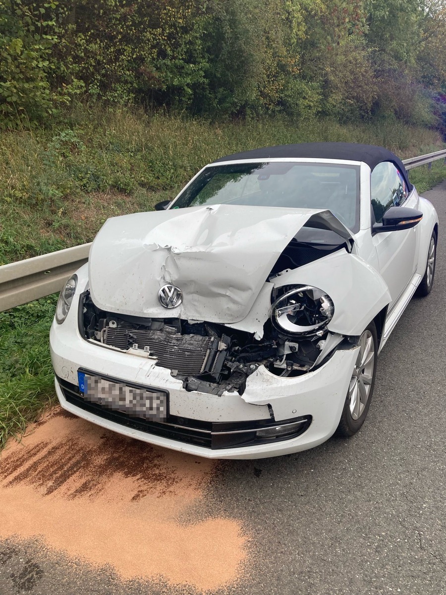 Um eine Kollision mit dem Gespann zu vermeiden, bremste der Gütersloher stark ab. Dadurch verlor er die Kontrolle über sein Auto und kollidierte mit dem Heck eines Sattelaufliegers. Der 58-Jährige erlitt leichte Verletzungen bei dem Unfall. Am Beetle entstand schwerer Sachschaden in Höhe von rund 10.000 Euro. Das Auto wurde abgeschleppt.