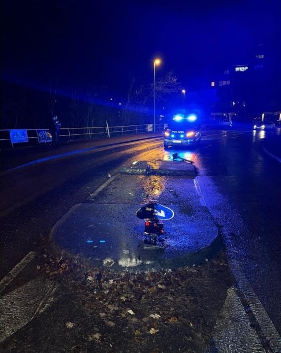 SI / Bielefeld / Sennstadt - Ein betrunkener Bielefelder fuhr am Donnerstag, 27.11.2025, über eine Verkehrsinsel auf dem Ramsbrockring. Mit dem stark beschädigten Unfallwagen versuchte er anschließend zu flüchten.