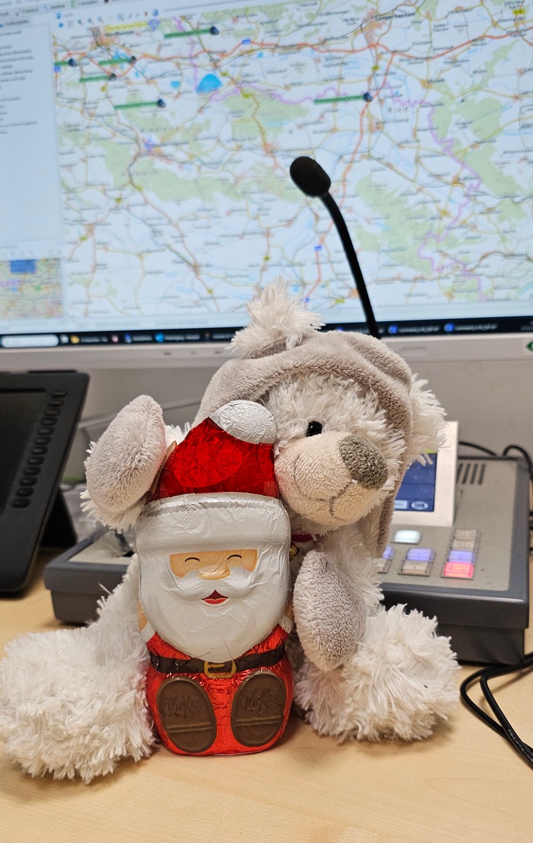 "Ich verbringe nun bald schon das dritte Weihnachtsfest bei der Polizeiinspektion Kyffhäuser. Bisher hat sich meine Familie immernoch nicht gemeldet oder sich nach mir erkundigt. Das macht mich traurig. Zum Glück passen die Polizisten seit meinem Auffinden im Frühjahr 2023 auf mich auf und geben mir ein warmes Heim. Dafür bin ich dankbar. Ich helfe auch, wo ich kann, aber im Kinderzimmer wäre ich lieber. Ich wünsche mir zu Weihnachten, dass mich doch noch jemand vermisst und wieder nach Hause holt!" Der kleine weiße Bär von der B 4