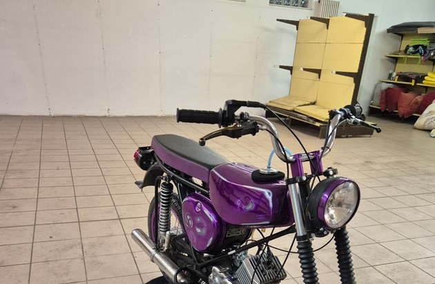 In der Nacht vom 13.12. zum 14.12. wurde in der Straße "Mittlere Teichgasse" in Bad Salzungen ein Kleinkraftrad der Marke Simson, Modell S 51, aus einer Garage entwendet. Die Simson ist in einer auffälligen lila Farbe lackiert. Zeugen, welche Hinweise zum Sachverhalt geben können, werden gebeten, sich unter der Telefonnummer 03695-5510 bei der Polizeiinspektion Bad Salzungen zu melden.