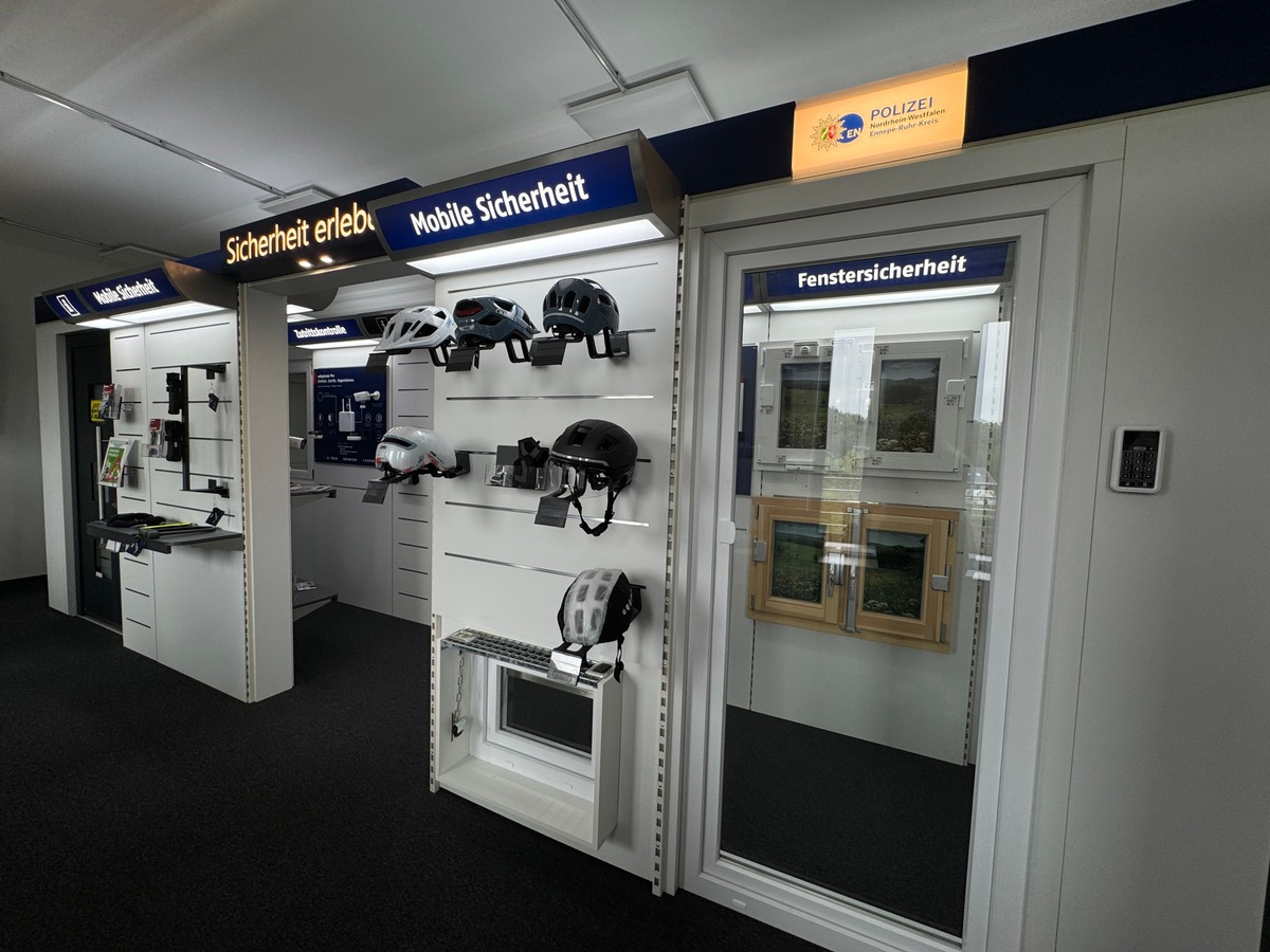Eine weitere Aktion wird ein Tag der offenen Tür der Beratungsstelle der Kriminalprävention sein. Am 25.10.2025 haben Interessierte die Möglichkeit, sich den Ausstellungsraum mit dem darin aufgebauten Cube (siehe Fotos) anzusehen. Außerdem wird es einen Vortrag zum Thema Wohnungseinbruch geben und die Besucherinnen und Besucher werden sensibilisiert, wie sie bei einem Einbruch oder verdächtigen Feststellungen handeln sollten. Hierbei wird im Vorfeld um Anmeldung ab dem 06.10.2025 für die einzelnen Termine gebeten, damit die interessierten Personen gleichermaßen die Chance haben, mit den Beamtinnen und Beamten der Kriminalprävention ins Gespräch zu kommen. Die Termine beginnen jeweils um 10:00, um 11:30 und um 13:00 Uhr und werden circa eine Stunde dauern. Anmelden können Sie sich unter der 02333 9166-9212 oder per Mail bei kk2kpoberatungsstelle.ennepe-ruhr-kreis@polizei.nrw.de.