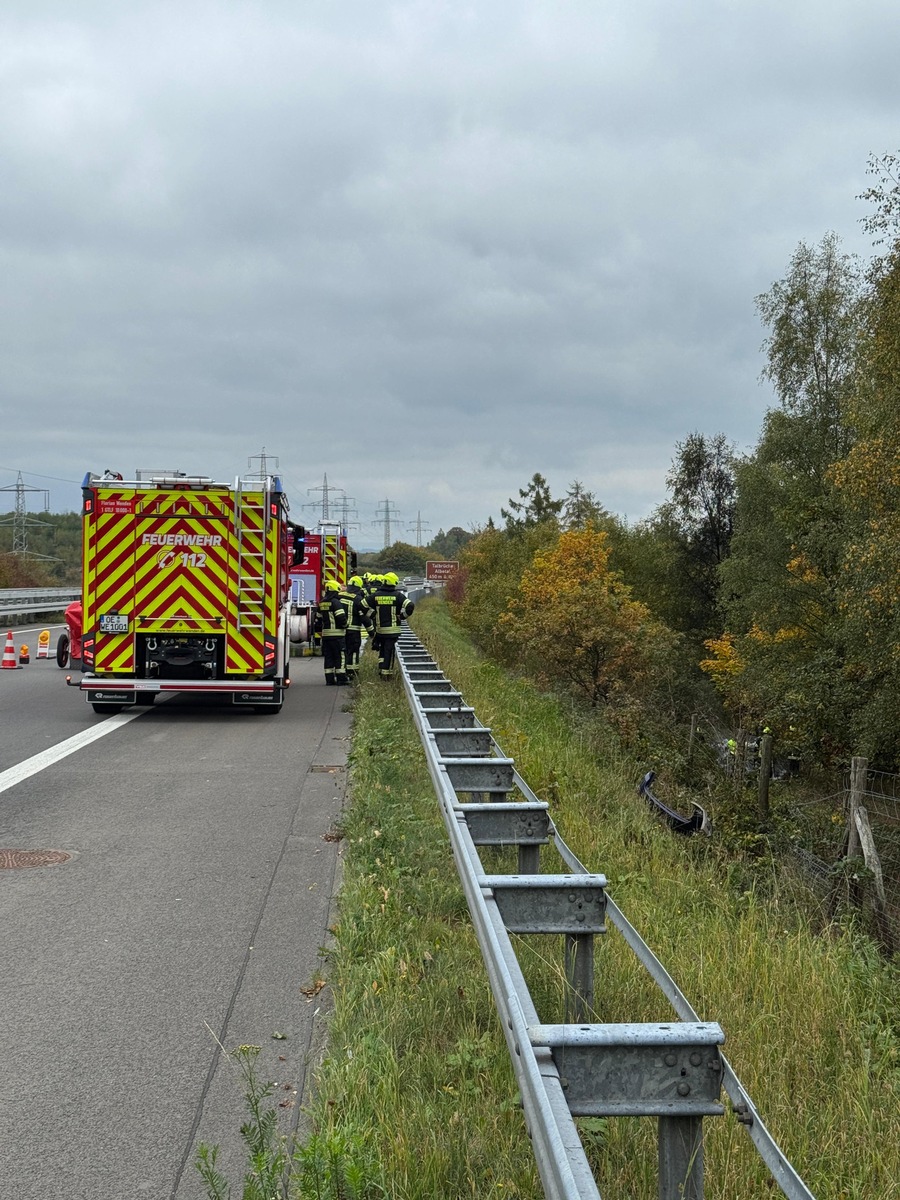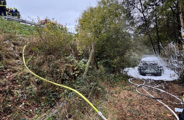 Am Samstagnachmittag wurde die Feuerwehr der Gemeinde Wenden mit den Einheiten Gerlingen und Hillmicke zu einem gemeldeten Flächenbrand auf die Bundesautobahn 4 alarmiert. Noch auf der Anfahrt stellte sich die Lage anders dar. Nach erster Rückmeldung der Autobahnpolizei handelte es sich nicht um einen Vegetationsbrand, sondern um einen brennenden Pkw abseits der Fahrbahn. Ersten Erkenntnissen zufolge war der Fahrer des Fahrzeugs aufgrund eines medizinischen Notfalls von der Fahrbahn abgekommen. Nachdem das Fahrzeug zum Stillstand gekommen war, fing es aus bislang ungeklärter Ursache Feuer. Glücklicherweise konnten alle Insassen das Fahrzeug eigenständig und rechtzeitig verlassen. Die Feuerwehr ging mit einem Angriffstrupp unter Atemschutz gegen die Flammen vor und konnte den Brand zügig unter Kontrolle bringen. Dennoch konnte ein vollständiges Ausbrennen des PKWs nicht verhindert werden. Im Anschluss wurde das Fahrzeug mit Schaum abgedeckt, um ein Wiederaufflammen zu verhindern. Der Rettungsdienst versorgte zwei leicht verletzte Personen und brachte sie zur weiteren Behandlung in ein Krankenhaus. Während des Einsatzes kam es auf der Autobahn 4 in Fahrtrichtung Siegen zeitweise zu Verkehrsbehinderungen.