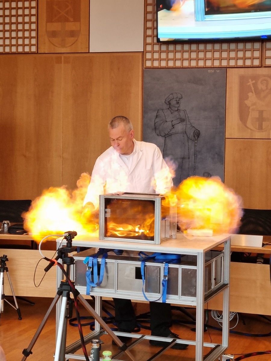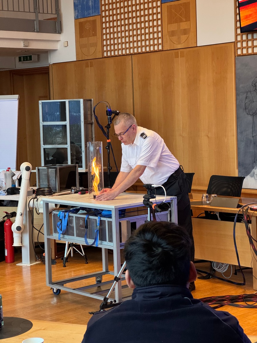Strömungspfade entstehen bei jedem Brand. Sie bestimmen, wie sich Rauch, Hitze und Flammen durch ein Gebäude bewegen - und können innerhalb von Sekunden lebensgefährliche Situationen für Einsatzkräfte und eingeschlossene Personen verursachen. Im Seminar wurde eindrucksvoll aufgezeigt, wie diese thermisch bedingten Strömungen entstehen, woran sie erkannt werden können und welchen entscheidenden Einfluss sie auf die Brandausbreitung haben. Besonders fesselnd waren die Live-Experimente an Raum- und Gebäudemodellen. Hier wurden Strömungspfade gezielt erzeugt, sichtbar gemacht und messtechnisch ausgewertet. Die Teilnehmenden konnten hautnah nachvollziehen, welche Auswirkungen offene Türen, Fenster oder falsche taktische Entscheidungen auf den Brandverlauf haben - und wie schnell sich Gefahren für Trupps im Innenangriff entwickeln können. Video- und Bildmaterial aus realen Einsätzen sorgte zusätzlich für einen direkten Bezug zur Einsatzpraxis bei Zimmer-, Wohnungs- und Gebäudebränden.
