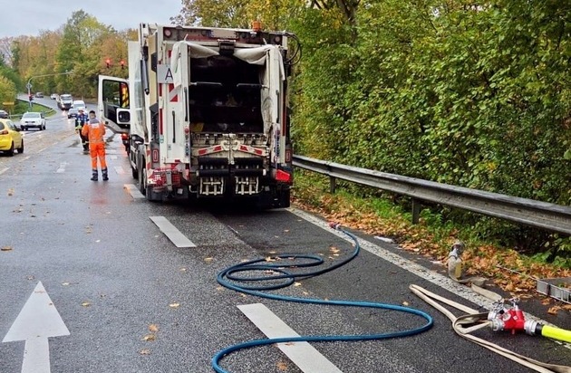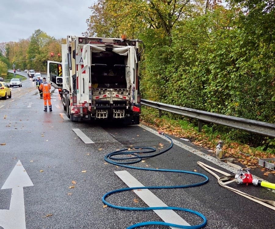 Am Montagvormittag wurde die Freiwillige Feuerwehr Königswinter zu einem brennenden LKW in Oberpleis alarmiert. Es stieg Rauch aus dem Laderaum eines Abfallsammelfahrzeuges auf.