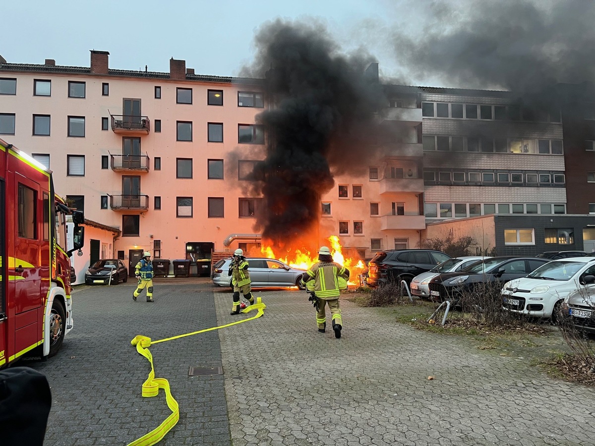 FW Bremerhaven: Vier Fahrzeuge in Flammen in der Bremerhavener Innenstadt