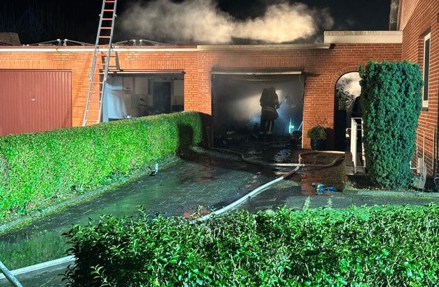 FW-ROW: Garage brennt in voller Ausdehnung - Feuerwehr verhindert Übergreifen auf Wohnhaus