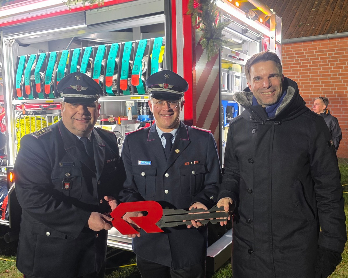 Am Nachmittag übergab Oberbürgermeister Dr. Jörg Nigge offiziell die Schlüssel an Stadtbrandmeister Uwe Wiechmann und Ortsbrandmeister Sven Martens. Das Fahrzeug wird bei der Ortsfeuerwehr Bostel zum Einsatz kommen und ersetzt ein über 30 Jahre altes Löschgruppenfahrzeug (LF 8-6, Baujahr 1994). Sven Martens bedankte sich bei der Verwaltung der Stadt Celle und den politisch Verantwortlichen für das Vertrauen und die Investition in die Zukunft, die sie mit der Beschaffung für die Bosteler Ortswehrfeuerwehr zum Ausdruck gebracht haben.