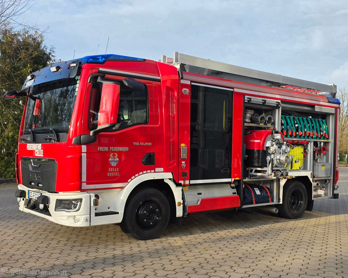 Das neue Fahrzeug wurde speziell für die Belange der Ortsfeuerwehr Bostel geplant und konstruiert. So verfügt das Löschgruppenfahrzeug über ein verkürztes Fahrgestell von MAN mit einer Fahrzeugbreite von nur 2,30 Meter. Dies war erforderlich, um das Fahrzeug im Feuerwehrhaus Bostel stationieren zu können. Trotz der geringen Fahrzeugmaße konnten die Belange der Ortsfeuerwehr an die Beladung und Ausstattung voll bedacht werden. Das grundsätzlich nach Norm beladene Löschgruppenfahrzeug verfügt im Wesentlichen über: