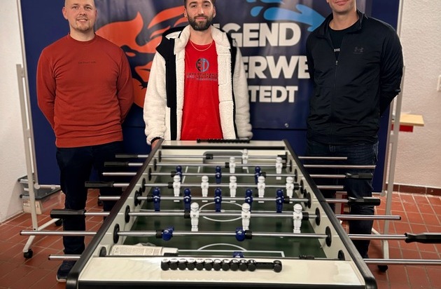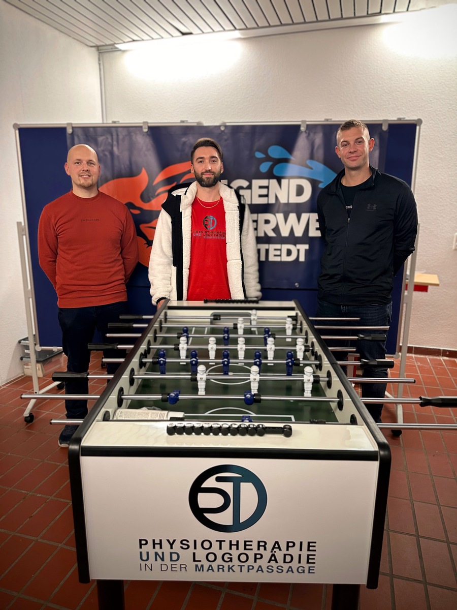 Ein weiterer Höhepunkt des Abends war die Übergabe mehrerer Spenden. Dominik Modlinski, Inhaber der Praxis für Physiotherapie und Logopädie in der Marktpassage, überreichte der Ortsfeuerwehr einen neuen Kickertisch. Dieser wurde noch am selben Abend eingeweiht und erfreute sich großer Beliebtheit. Bereits zuvor hatte Marco Müller, Inhaber von Müller Transporte, der Feuerwehr eine Zapfanlage inklusive Zubehör gespendet, die ebenfalls zur Gemeinschaftspflege beiträgt.