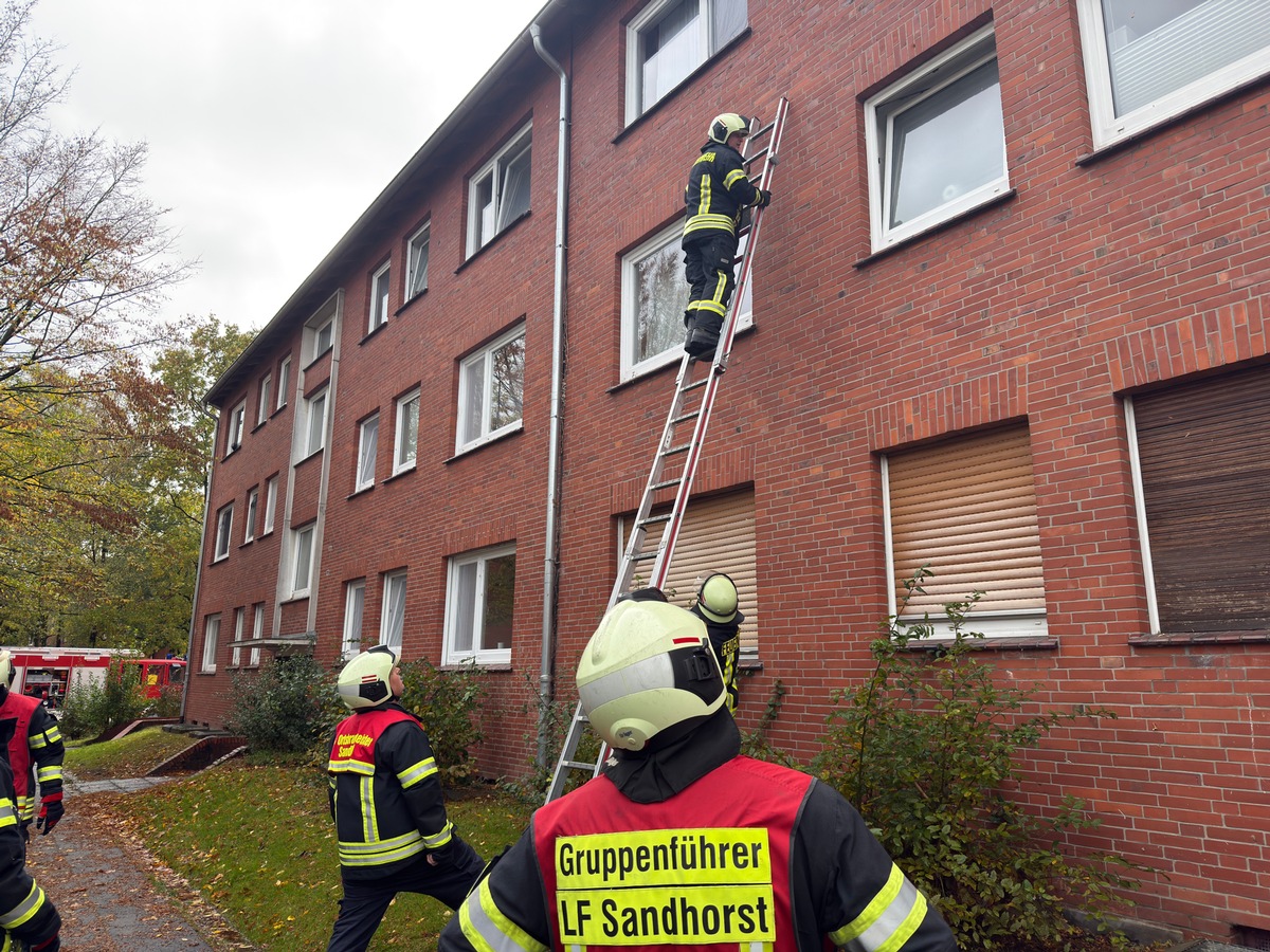 Ein Topf mit gänzlich verbrannten Inhalten hat in den Sonntagmittagsstunden einige Rettungskräfte in die Wiesenstraße gerufen. Anwohner hatten das Piepen eines Rauchmelders sowie Brandgeruch aus einer Mehrparteienhauswohnung bemerkt und daraufhin den Notruf gewählt, wodurch die Feuerwehren Sandhorst und Aurich gemeinsam mit Rettungsdienst, Polizei und dem Deutschen Roten Kreuz alarmiert wurden. Vor Ort standen die Einsatzkräfte zunächst vor einer verschlossenen Wohnungstür. Auf Klingeln und Klopfen erfolgte keine Reaktion, weshalb sich die Feuerwehrleute einen Zugang in die Räumlichkeiten verschaffen mussten.