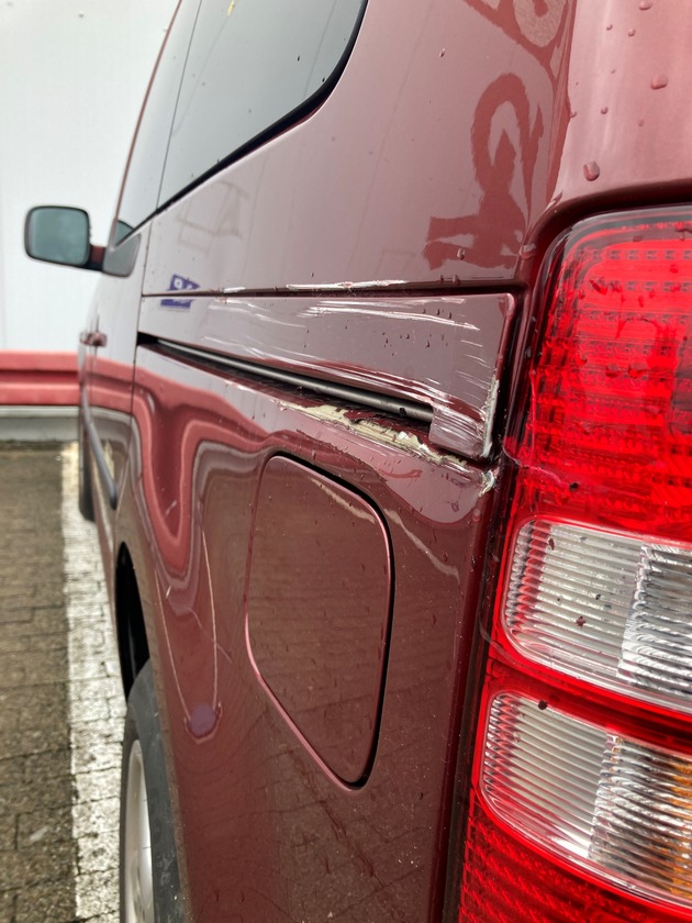 Am Montag, den 27.10.2025 kam es zwischen 10:00 Uhr und 11:30 Uhr zu einem Verkehrsunfall auf dem Parkplatz der Fundgrube in Petersberg. Ein unbekanntes Fahrzeug touchierte den geparkten dunkelroten VW-Caddy auf der Fahrerseite im hinteren Bereich und entfernte sich unerlaubt von der Unfallstelle. Es entstand ein Sachschaden von geschätzt 4000EUR. Zeugen des Unfalls werden gebeten, sich bei der Polizeiinspektion Waldfischbach-Burgalben unter Tel: 0631-369-15499 oder E-Mail: piwaldfischbach-burgalben@polizei.rlp.de zu melden. /piwfb