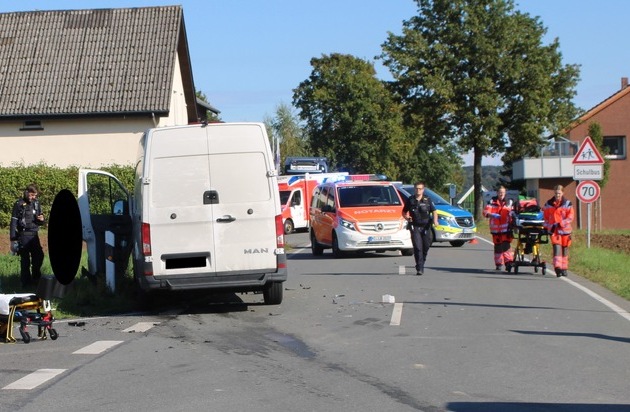 (DM) Zwischen Büscherheide und Börninghausen kam es am Dienstagnachmittag zu einem schweren Verkehrsunfall, bei dem ein Mann und ein Kind verletzt wurden.