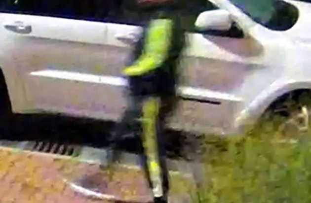 Nach den bisherigen Erkenntnissen trug die tatverdächtige Person vermutlich einen Trainingsanzug mit hellen (neongelben) Streifen auf den Ärmeln und den Außenseiten der Hose. Ebenso trug die bislang unbekannte Person dunkle Sneaker mit weißen Sohlen und möglicherweise weißem Logo auf den nach außen gerichteten Seiten.