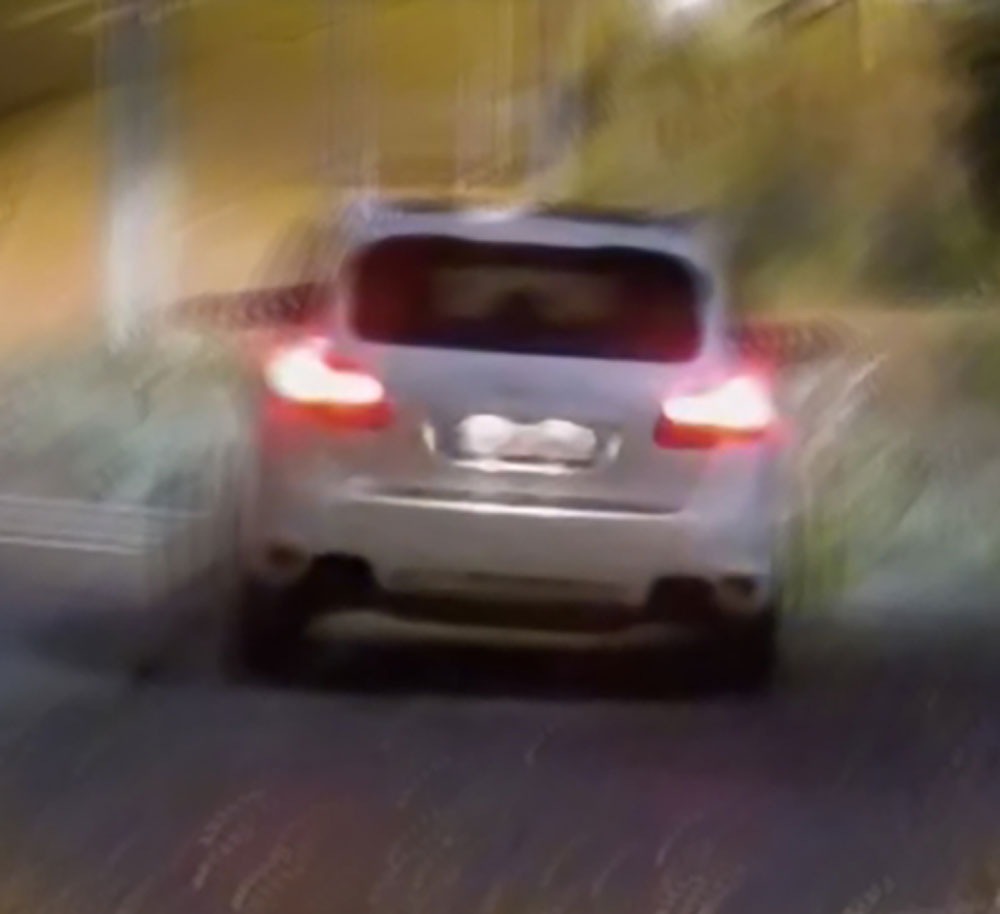 Im Zusammenhang mit der Tat wird auch nach einem weißen Porsche Chayenne GTS oder Turbo (Baujahr etwa 2012) mit einem lackierten Diffusor (Stoßfänger), Ausbuchtungen am Heck auf Höhe der Auspuffanlage, schwarzen Felgen und Panoramadach gesucht.