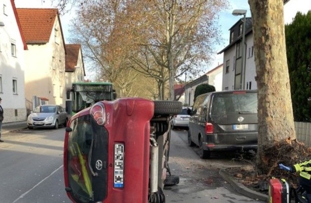 POL-OF: Fahrerin bei Alleinunfall leicht verletzt: Kleinwagen fällt auf die Seite