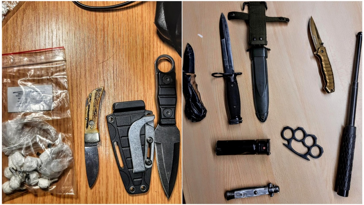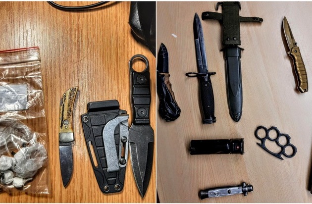 Die Waffen, Messer, Betäubungsmittel und Vapes wurden sichergestellt.