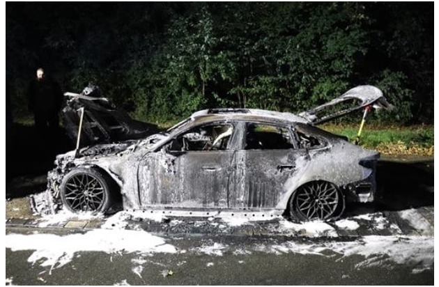 Aufmerksame Zeugen meldeten gegen 4 Uhr einen in Brand stehenden weißen 4er BMW an der Berliner Straße in Höhe der Hausnummer 95. Die Feuerwehr war schnell vor Ort und konnte den Brand löschen. Dennoch brannte der BMW vollständig aus. Zudem wurden ein davor abgestellter VW Transporter und ein dahinter geparkter Nissan Micra durch das Feuer leicht beschädigt. Der Gesamtschaden wird auf einen fünfstelligen Betrag geschätzt.