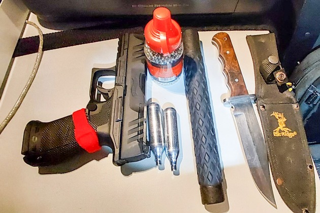 Messern, Pfefferspray, einem Teleskopschlagstock sowie einer